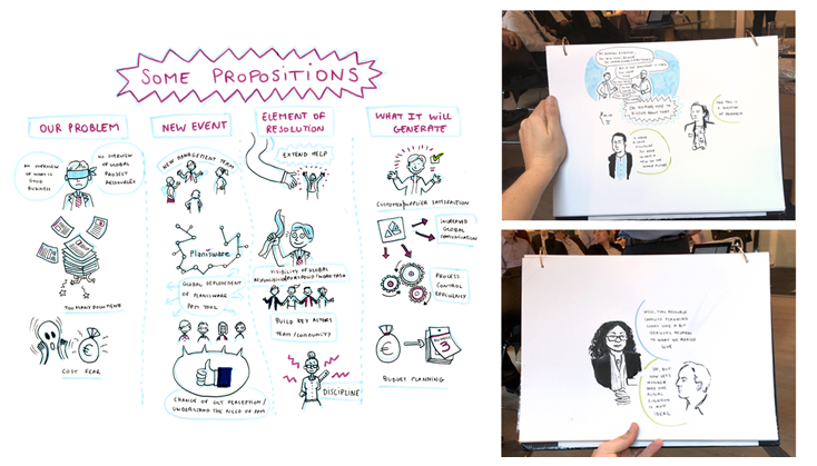 Travail de livesketching et facilitation graphique effectué lors d'un séminaire de deux jours à Zurich pour Beng's et le groupe Kongsberg.