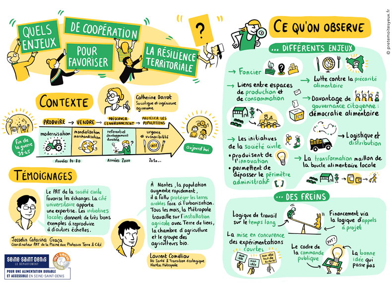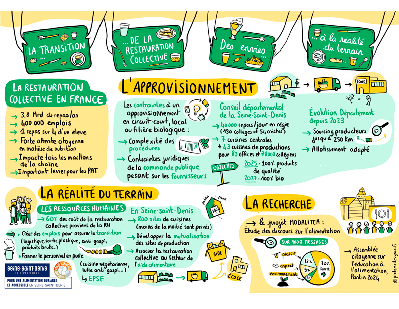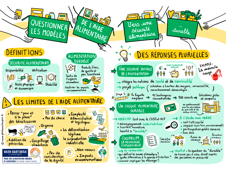 Synthèses graphiques réalisées à l'occasion du colloque organisé par le Programme Alimentaire de Seine-saint-Denis. Voir d'autres fresques de facilitation graphique.