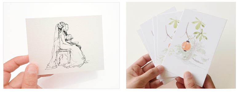 Pour revivre poétiquement les souvenirs d'une journée unique, je propose des carnets de mariages, en dessins et aquarelles.